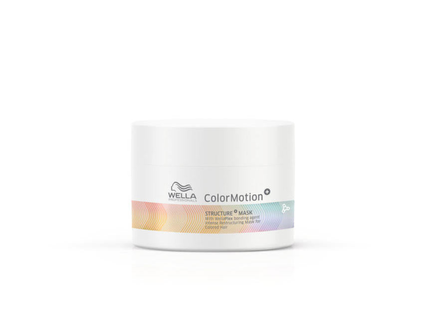 Re-bond colour treated hair with Wella ColorMotion+ Structure+ Mask. An intensive restructuring mask formulated with WellaPlex bond structuring agent to strengthen and restructure inner hair bonds and to add shine and lasting manageability to coloured hair.