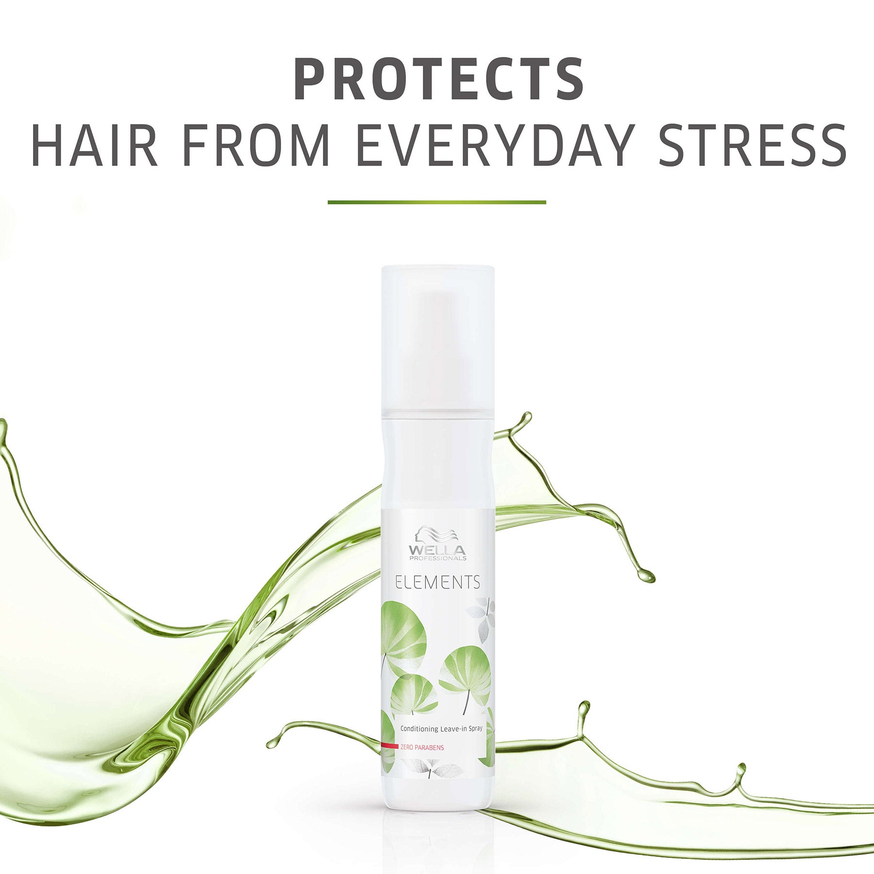 Wella Professionals Elements Renewing Leave-in Spray - Destressing & Detangling Spray for all hair types, normal to oily scalp. This Silicone-Free spray made with 99% natural origin ingredients, with Aloe Vera, protects hair from daily mechanical stress (combing or heating tools) and breakage, while it hydrates and tames static or frizzy hair.With up to 99% less breakage after one use (vs. non-conditioning shampoo), this plant-based, free of animal-derived ingredients, moisturising leave-in spray spray, has a a clean label fragrance and is PH compatible.