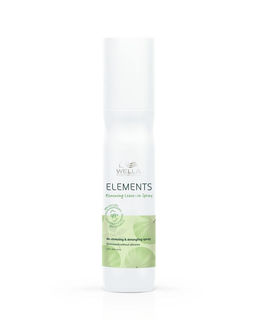 Product Claims: Wella Professionals Elements Renewing Leave-in Spray - Destressing & Detangling Spray for all hair types, normal to oily scalp. This Silicone-Free spray made with 99% natural origin ingredients, with Aloe Vera, protects hair from daily mechanical stress (combing or heating tools) and breakage, while it hydrates and tames static or frizzy hair.